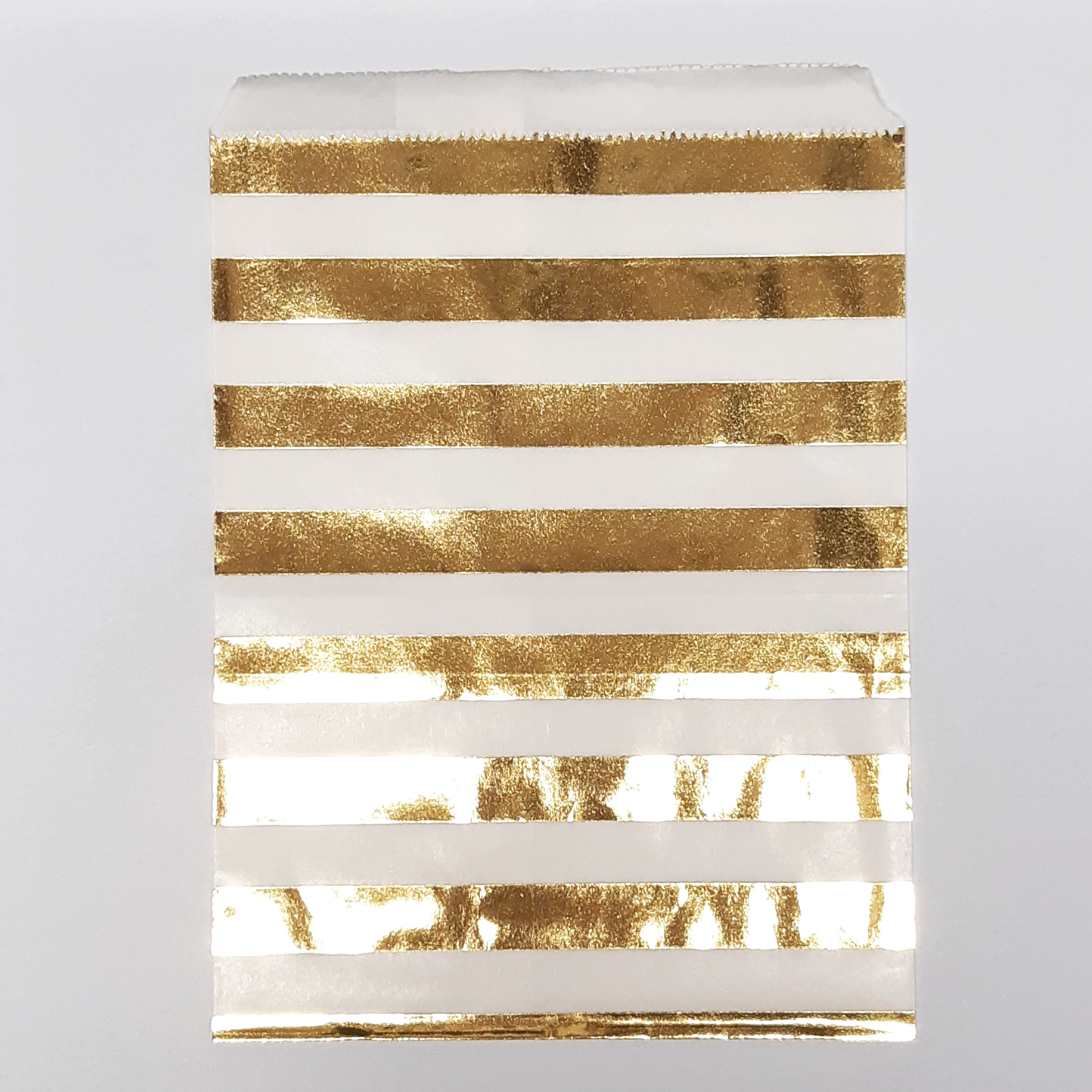 מארז שקיות נייר פסים זהב 13X18 ס"מ