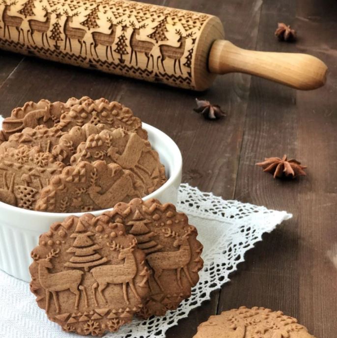 מערוך עץ להטבעה על בצק - דוגמת חג המולד
